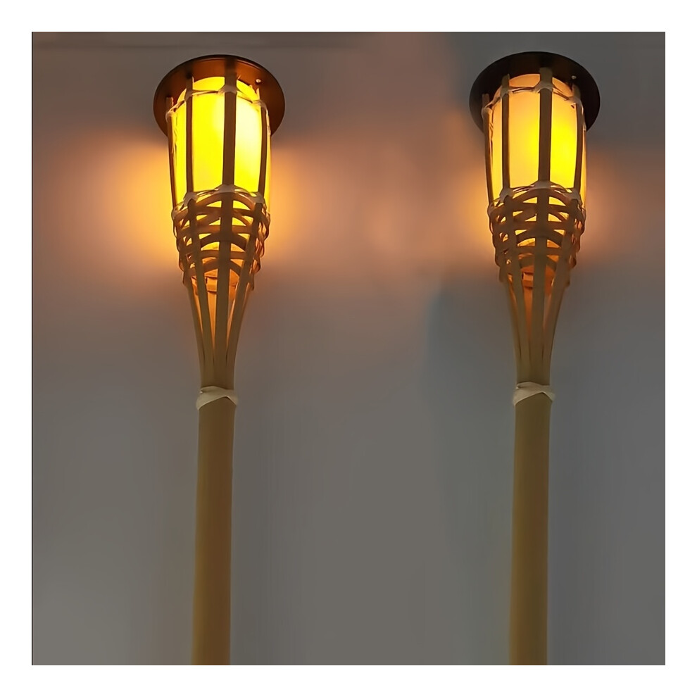 (1LED warm light, 2 Packs) Solar-Powered Bamboo Lanterns, Bamboo Art Torches, LED Outdoor Lighting Decorative Landscape Lights, Solar Garden Lights, L