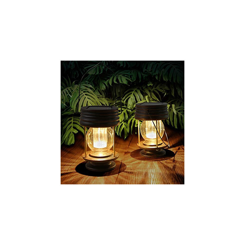 pearlstar Solar Lantern - Hanging Solar Lights Outdoor - 2 Pack Solar Powered Waterproof Led Lanterns Vintage Design for Landscape,Yard,Garden,Pa