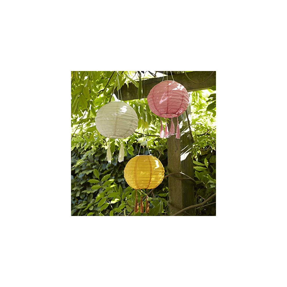 Lights4fun Set of 3 Outdoor LED Solar Powered Multi Coloured Chinese Hanging Garden Lanterns with Tassels IP44 Waterproof