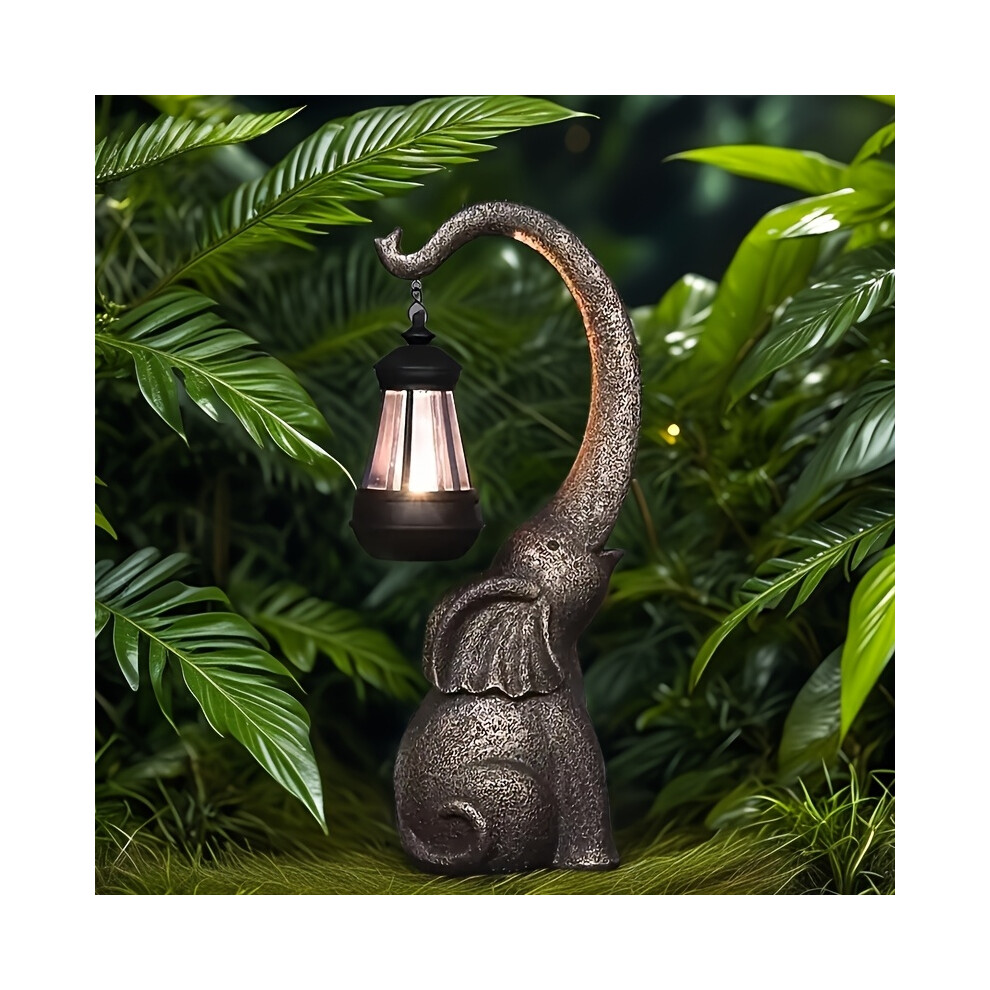 (Bronze) 1 Solar-Powered Elephant Garden Light - Rustic Resin Outdoor Sculpture with Black Metal Lanterns, Nickel Battery, Ideal for Home Decor