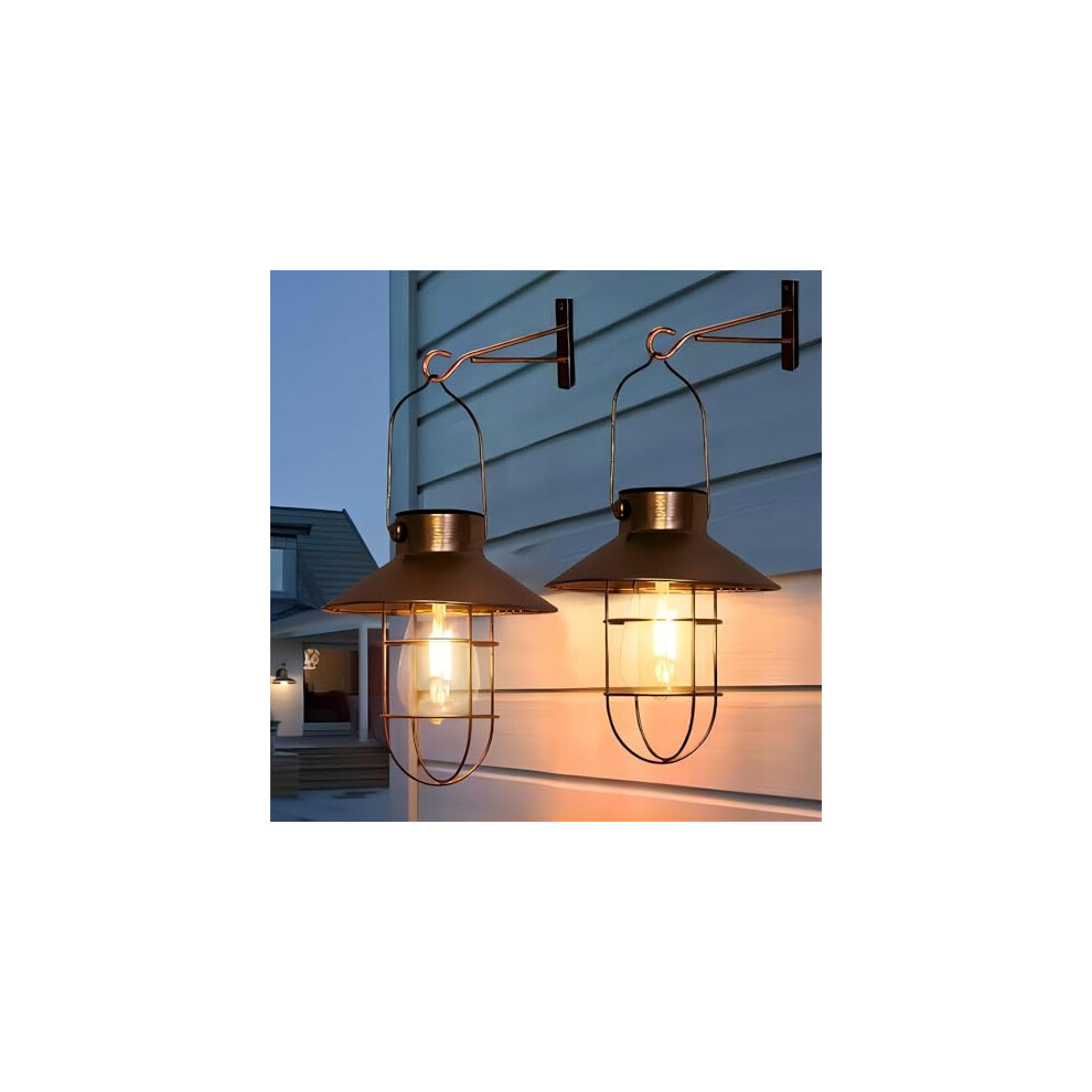 pearlstar Solar Lanterns Outdoor Metal Solar Powered Hanging Lights Waterproof for Wall Yard Garden Patio Garage Balcony Porch Fence Decor, Warm White Edison Bulb,with Wall Mount Kit(Black-2pack)
