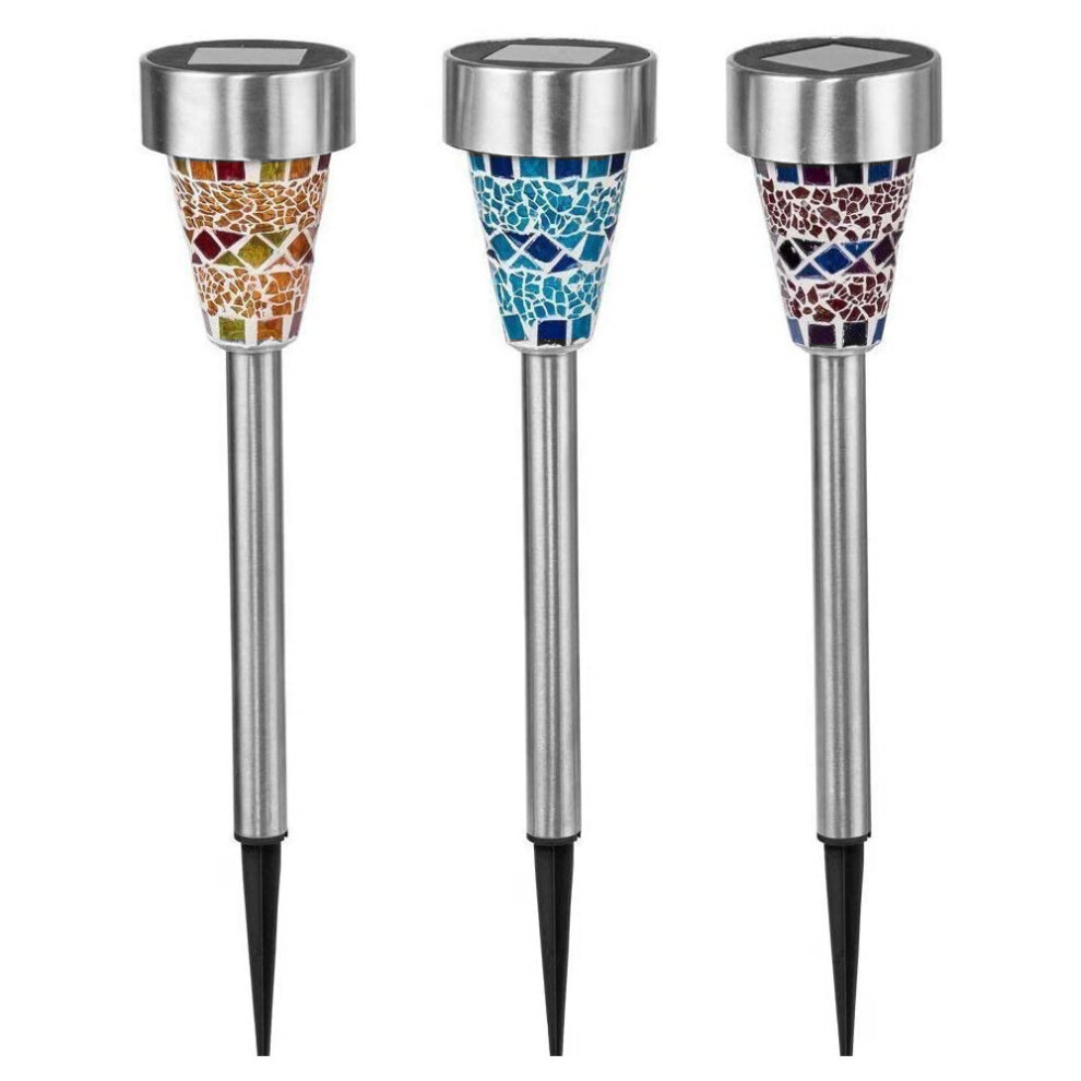 6 PACK SOLAR POWERED MOSAIC STAKE LIGHTS GARDEN BORDER LANTERNS