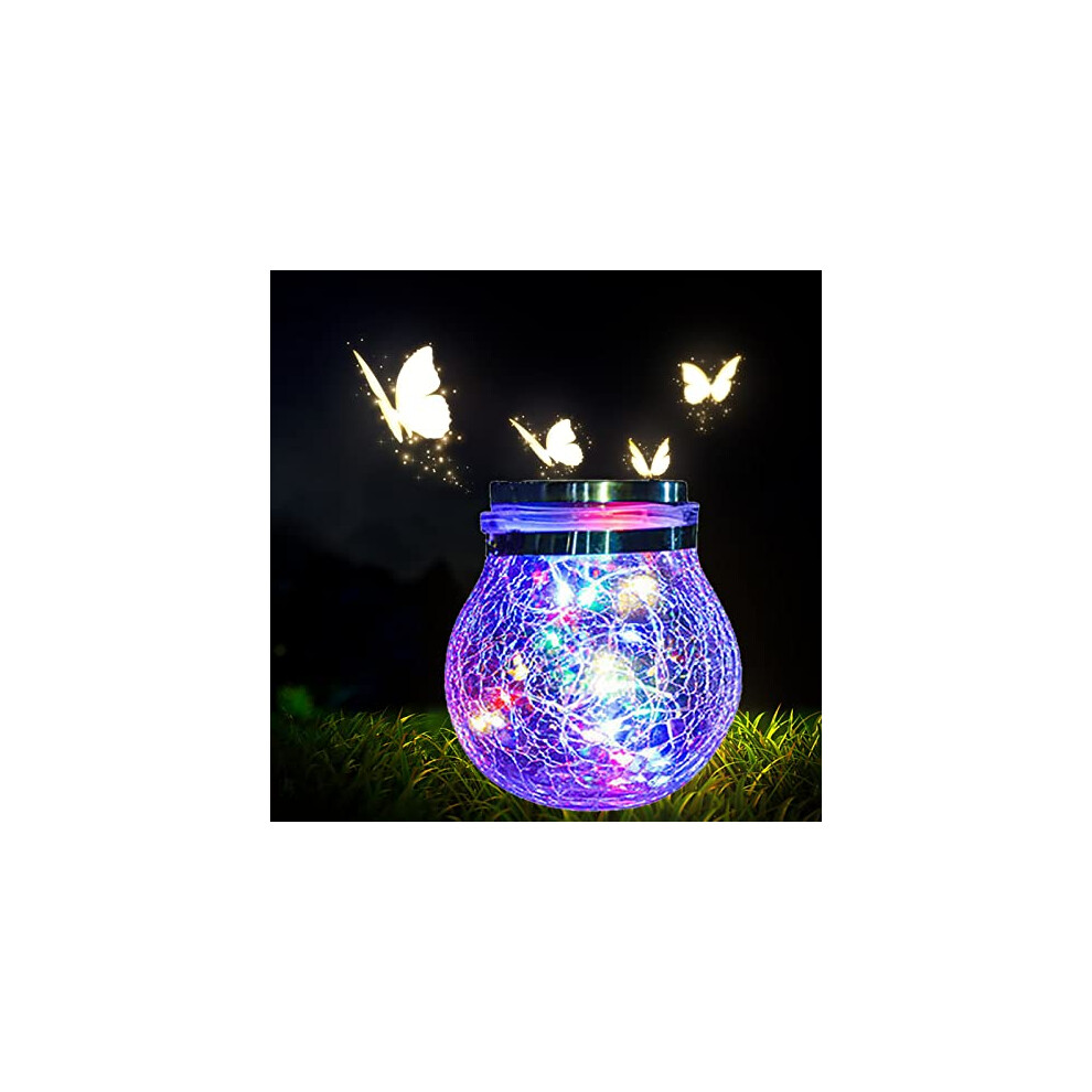 ( 1PC) Solar Powered Hanging Fairy Lanterns Frosted Glass Fairy Light Lamps Garden
