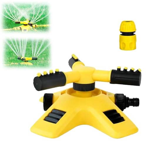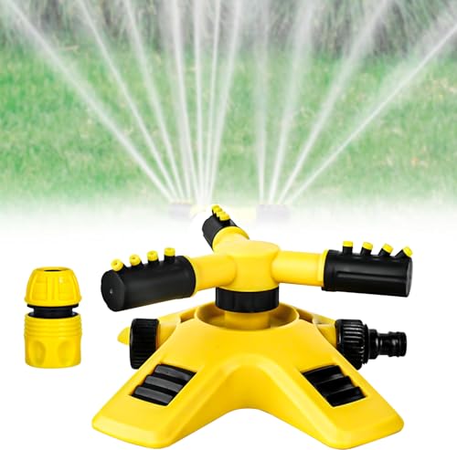 JJYHEHOT Garden Sprinkler, 360 Degree 3 Arm Rotating Sprinkler System, Sprinklers for Lawns, Automatic Lawn Water Sprinkler with Hose Attachment for Grass Plants Flowers Veggies Watering