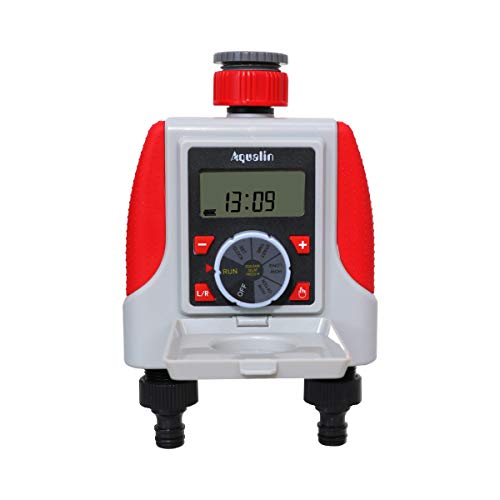 Aqualin Water Sprinkler Timer Two Outlets Electronic Hose Tap Garden Irrigation System Controller Watering Computer Waterproof for Lawn Yard