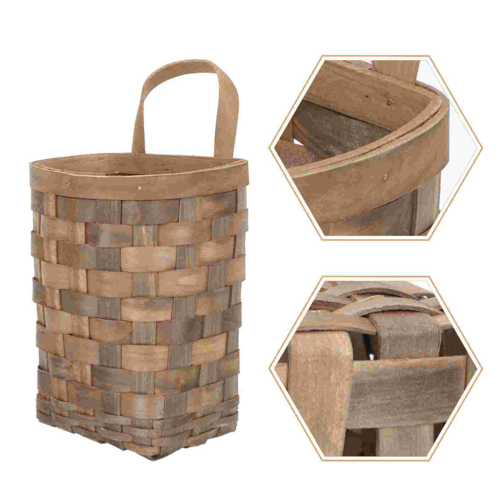 (a-Chocolate) Basket Hanging Storage Wall Woven Baskets Wicker Rattan Kitchen Fruit Organizers Planter Flower Garlic Vegetable Garden Bins