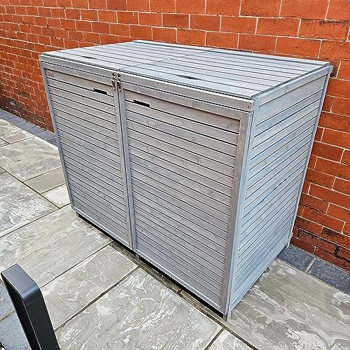 1.35m x 1.14m Large Grey Wooden Outdoor Garden Double Wheelie Bin Store Storage for 2 Bins, Garden Bin Storage box, Wheelie Bin Hideaways, Bin Shed