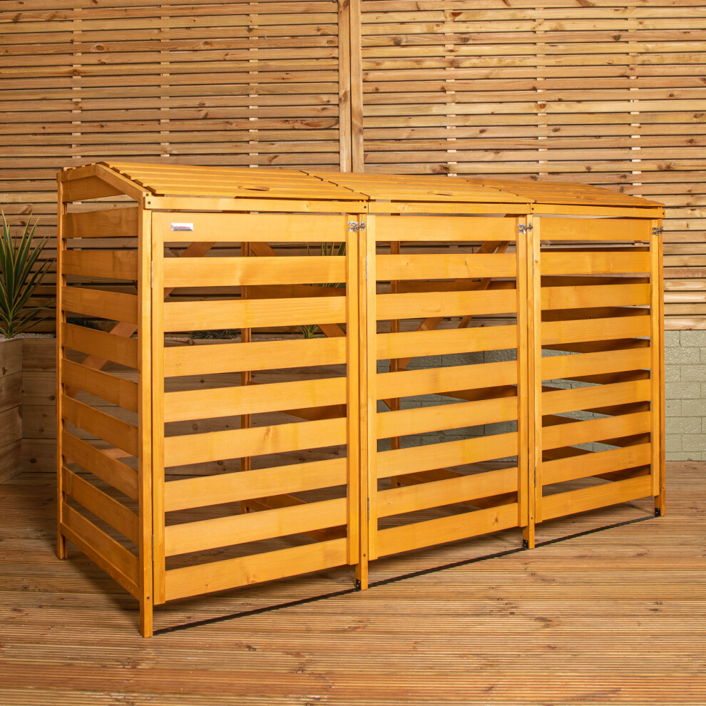 2.03m x 1.14m Large Wooden Outdoor Garden Triple Wheelie Bin Store Storage for 3 Bins (1 Single and 1 Twin) - Garden Bin Storage box, Wheelie Bin Hideaways, Bin Shed