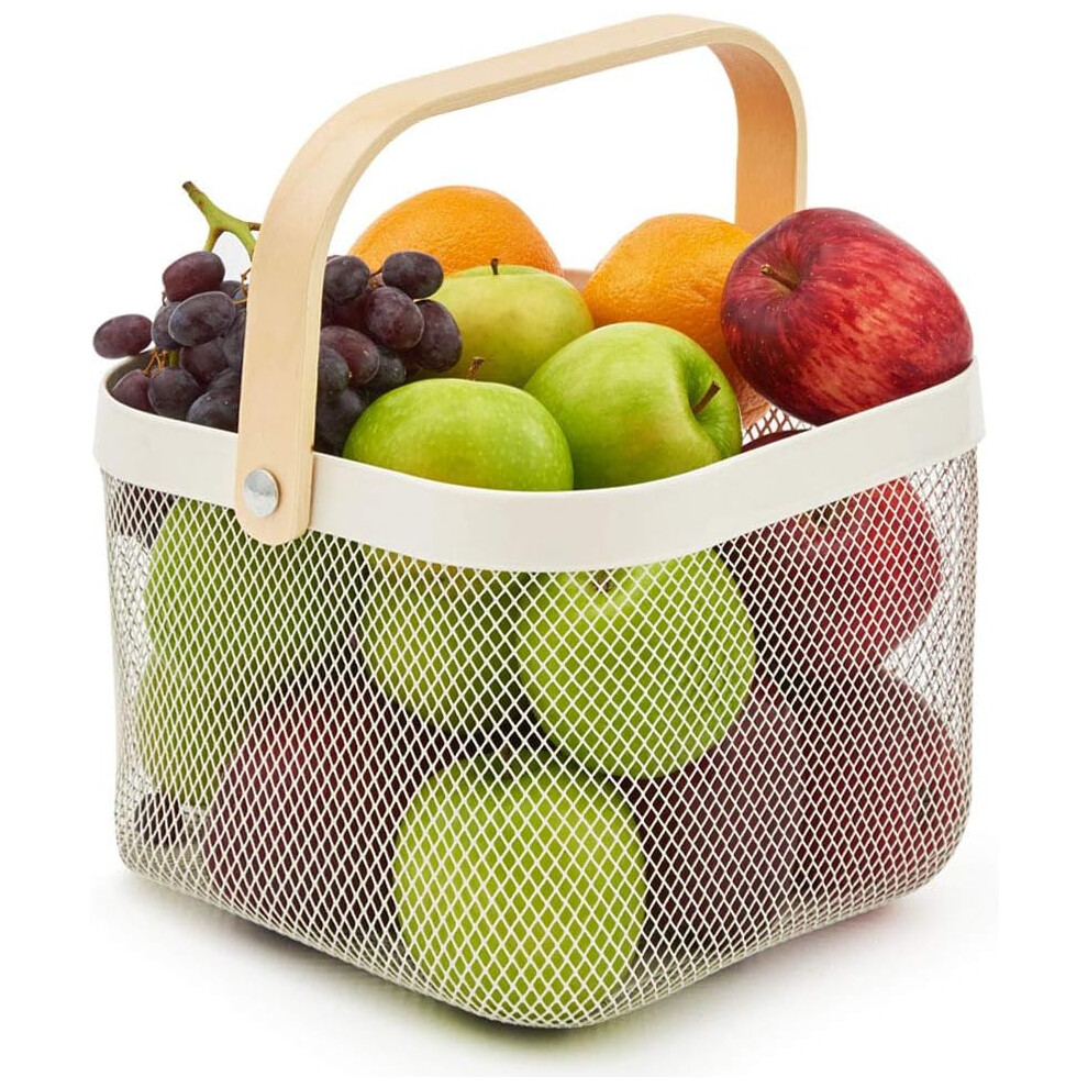 Garden Harvest Basket, Metal Mesh Wire Storage Bins With Foldable Wooden Handle For Multi-purpose Organizing And Decorating Home, Easy Visibility And