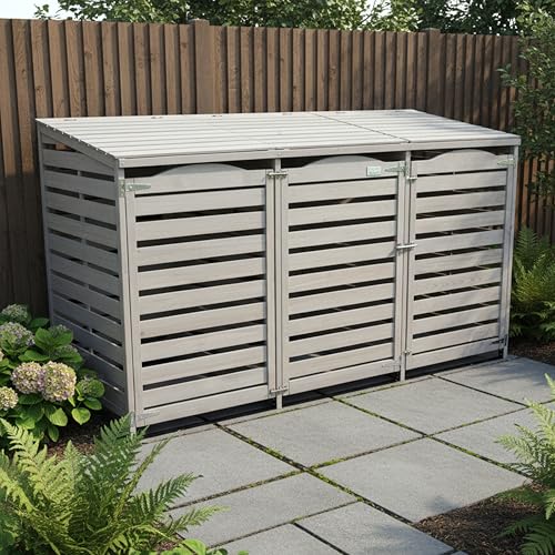 Samuel ALEXANDER 2.03m x 1.14m Large Grey Wooden Outdoor Garden Triple Wheelie Bin Store Storage for 3 Bins -(1 Single and 1 Twin) - Garden Bin Storage box, Wheelie Bin Hideaways, Bin Shed
