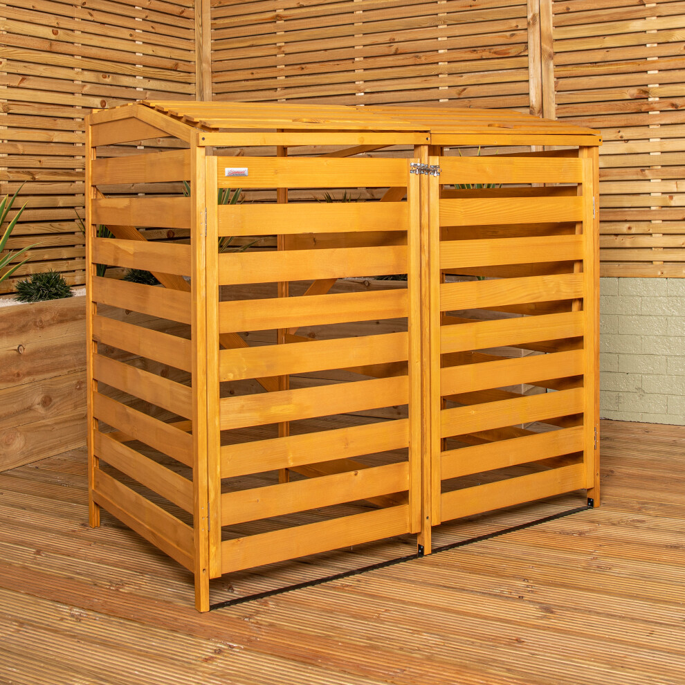 Large Wooden Double Wheelie Bin Store for 2 Bins - 1.34m x 1.2m, ACQ Treated Outdoor Garden Storage
