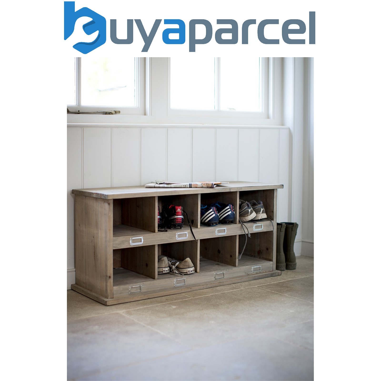 Garden Trading Chedworth Wooden Shoe Locker Hallway Storage Bench Unit 8 Pairs