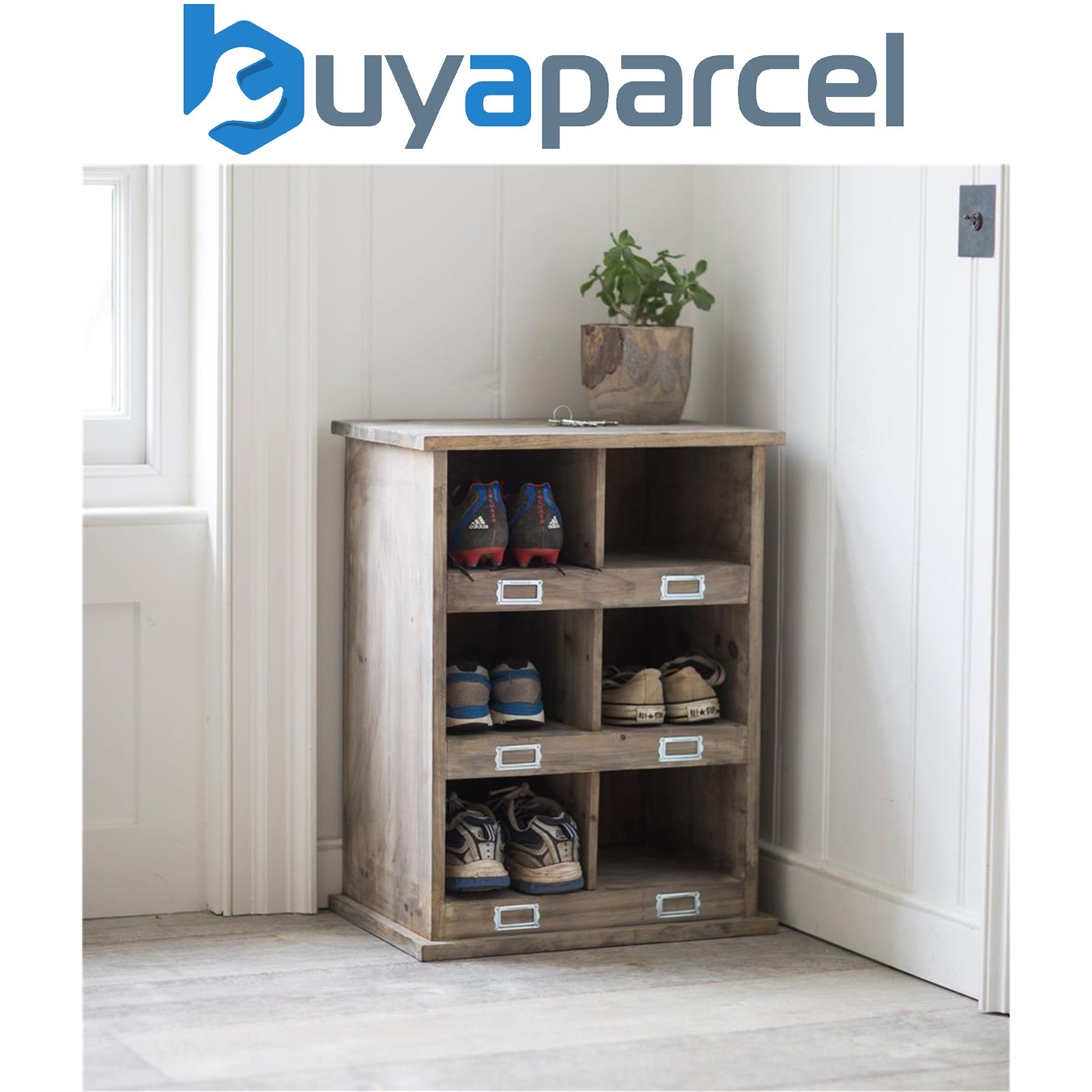 Garden Trading Chedworth Wooden Shoe Locker Rack Hallway Storage Unit 6 Pairs