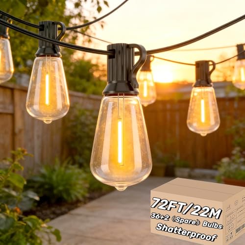 AzureStar 20M Festoon Lights Outdoor Mains 22M Garden String Festoon Lights with 36+2 LED ST38 Vintage String Llighs for Outside Patio Pergola Backyard Terrace Party Wedding Decor