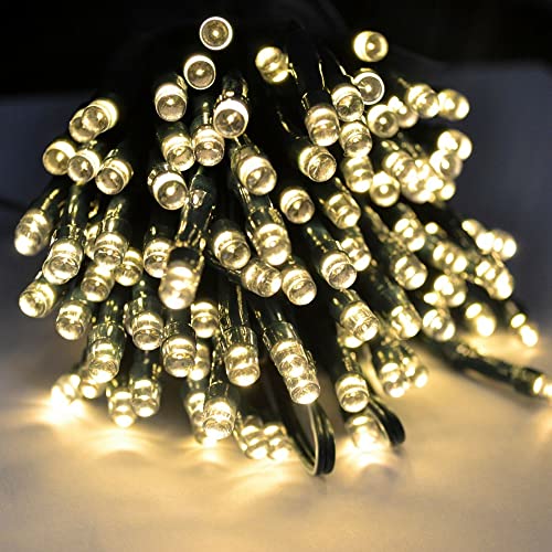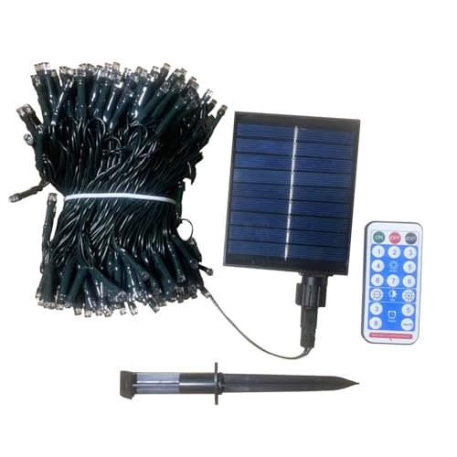 RunQiao 105ft/32m 300 Led Solar Lights Outdoor Garden Fairy String Lights Remote Control White Christmas Tree Lights Waterproof 8 Modes with Remote