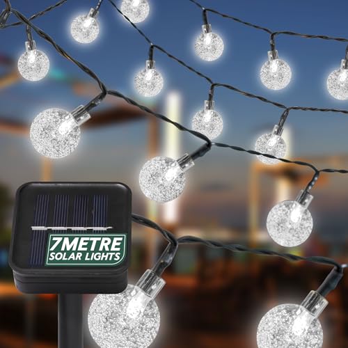 GloBrite 50 LED Solar String Lights | Outdoor Garden Crystal Ball String Lights with 8 Modes | 7M Waterproof Solar Lights | Garden Lights for Indoor, Outdoor, Christmas Decorations