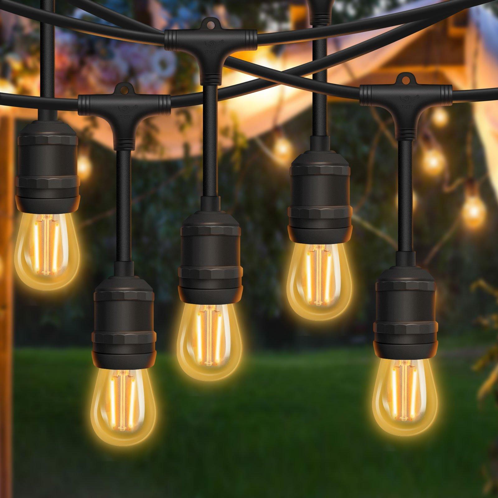 Svater Outdoor String Lights LED 96FT/29m, S14 2Pack 48FT Festoon Lights Mains Powered with 30+2 2W Plastic Bulbs, IP65 Waterproof Garden String Lights for Patio Party Wedding, 2700K Warm White