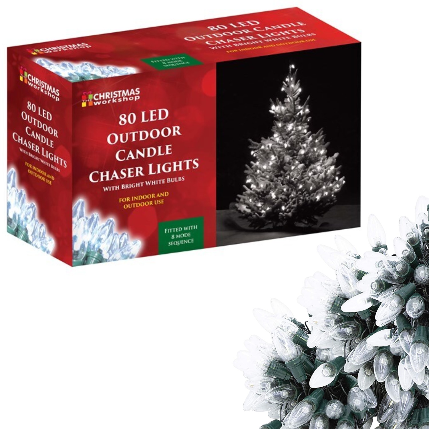 80 LED Outdoor Candle Chaser White Ultra Bright Christmas String Garden Lights