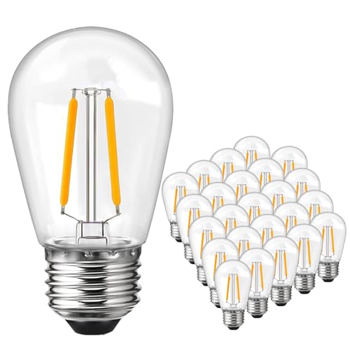 ROMANJOY E27 Screw Bulb Warm White 2700K, PC Shatterproof S14 LED Replacement Bulb Outdoor 2W Equivalent 20W, Filament LED Bulbs for Main Powered Garden String Lights, 25 Pack