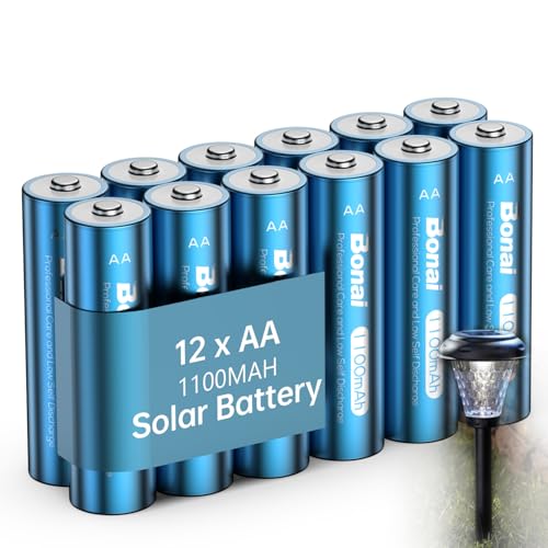 BONAI 12-Pack Solar Light Batteries - 1100mAh AA Rechargeable Batteries for Garden, String, Christmas Lights, and More