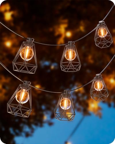 EDISHINE 50FT Outdoor Festoon Lights Mains Powered, 15M Outdoor String Lights with 20+2 1W Shatterproof G40 Bulbs, Diamond Cage Lampshade, Garden String Lights for Party, Wedding, Holiday Decoration