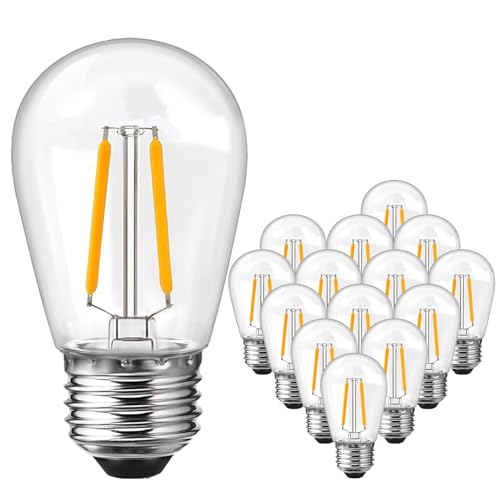 ROMANJOY Shatterproof S14 LED Replacement Bulb for Outdoor Garden String Lights, 2W Equivalent 20W, 2700K Warm White E27 Screw Bulb for Patio/Home/Wedding/Festival Decor, 15 Pack