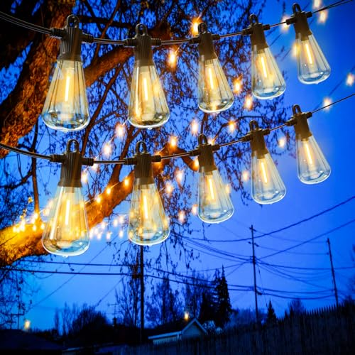 ZOTOYI 50Ft Outdoor Garden String Lights Mains Powered, ST38 Waterproof IP65 LED String Lights, Warm White Patio Festoon Lights for Backyard, Bistro, Café, Party, Wedding, 27Pcs Vintage Bulbs