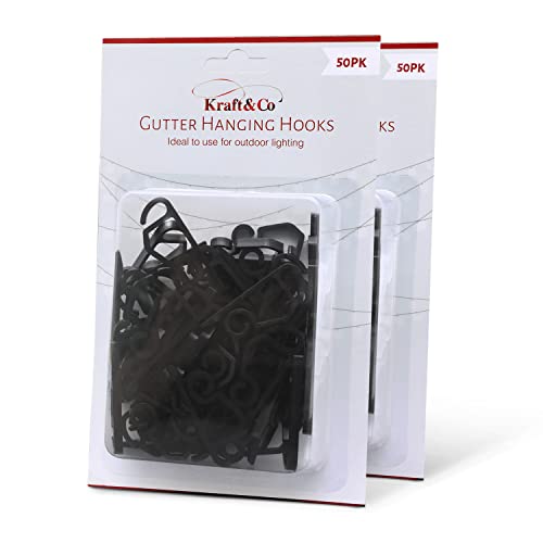 Kraft & Co 100 Gutter Hooks – Outdoor Hanging Clips for Lighting | Perfect for Garden String Lights, Christmas Fairy Lights | Strong Plastic Mini Guttering Hooks for Decorations (Black)
