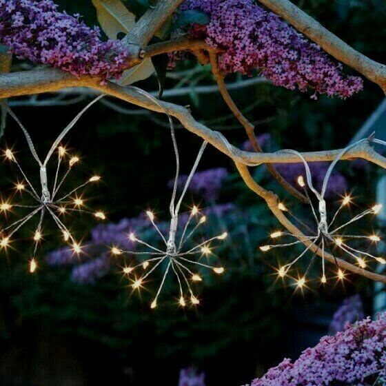 10 Starburst Cluster Solar Powered Garden Fairy String Lights Warm White LED