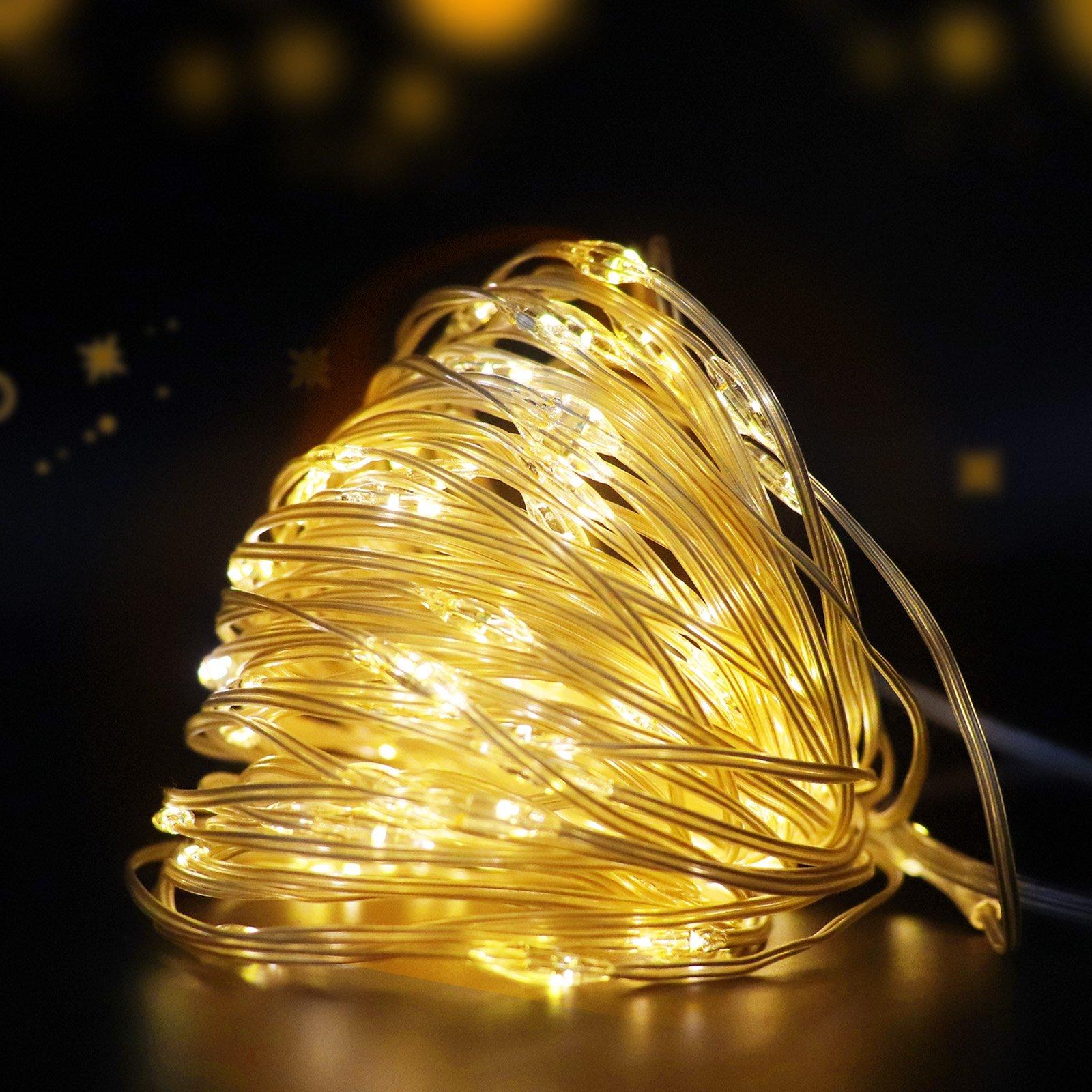 10M Fairy Outdoor Garden Christmas String Lights, Warm White 3000K, Powered by 3 x AA batteries, IP65