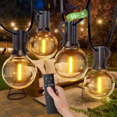 FIBRAVE Outdoor Garden String Lights LED 40Ft G40 12M Festoon Light Mains Powered with Remote Control Dimmable Timer Outside Lighting Waterproof Shatterproof Bulb Hanging for Balcony Gazebo Patio