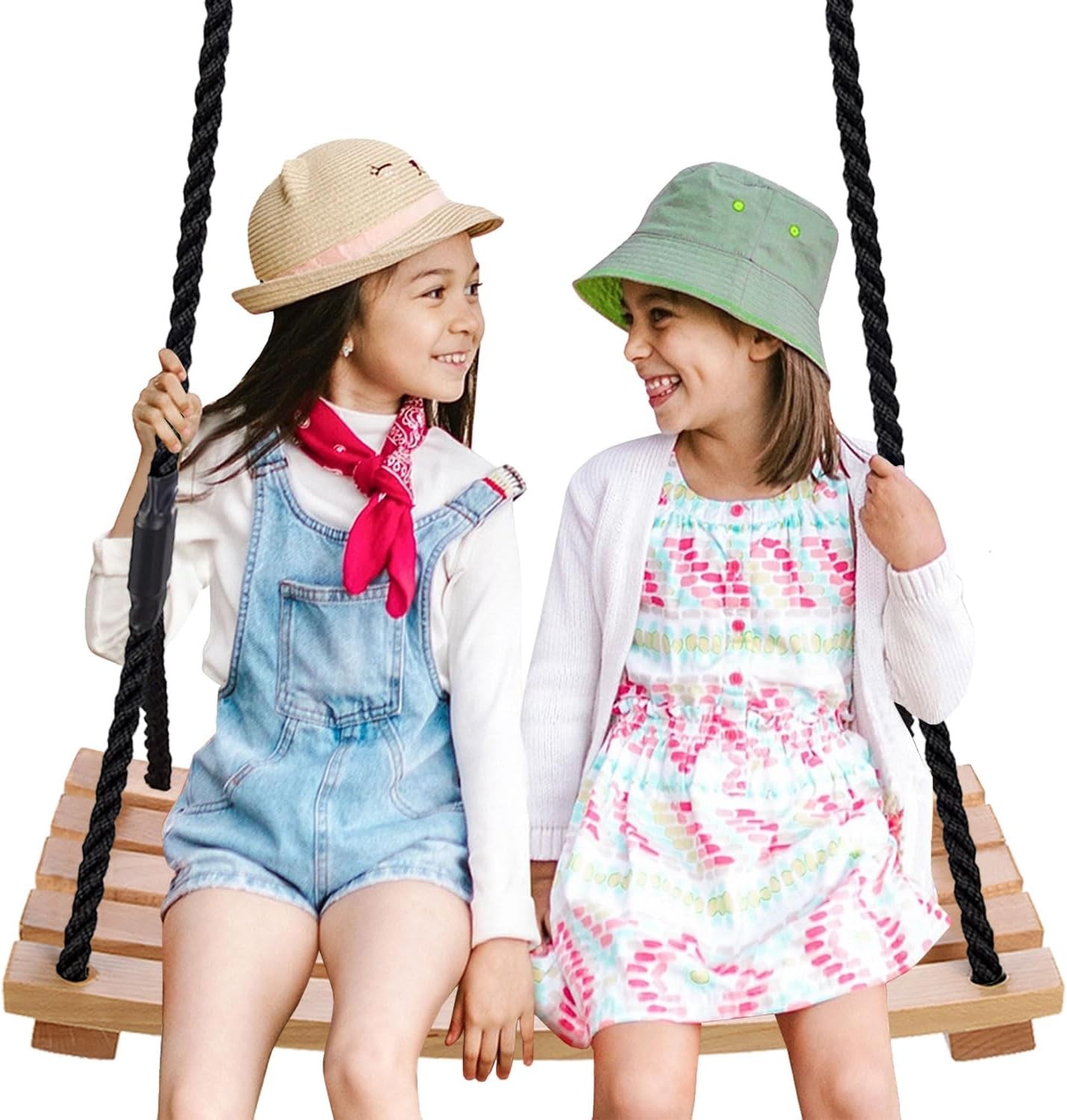 MechKit Wood Swing Board Premium Pine Wood Indoor Outdoor Swing Toy Adjustable Rope Length Durable Safe For Kids Adults Family Garden Playground (Large)