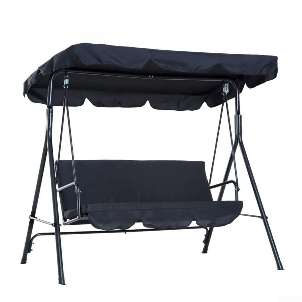 3-Seater Outdoor Swing Canopy Replacement - Waterproof and Windproof for Garden Swing Seats, 195x125x15 cm, Black