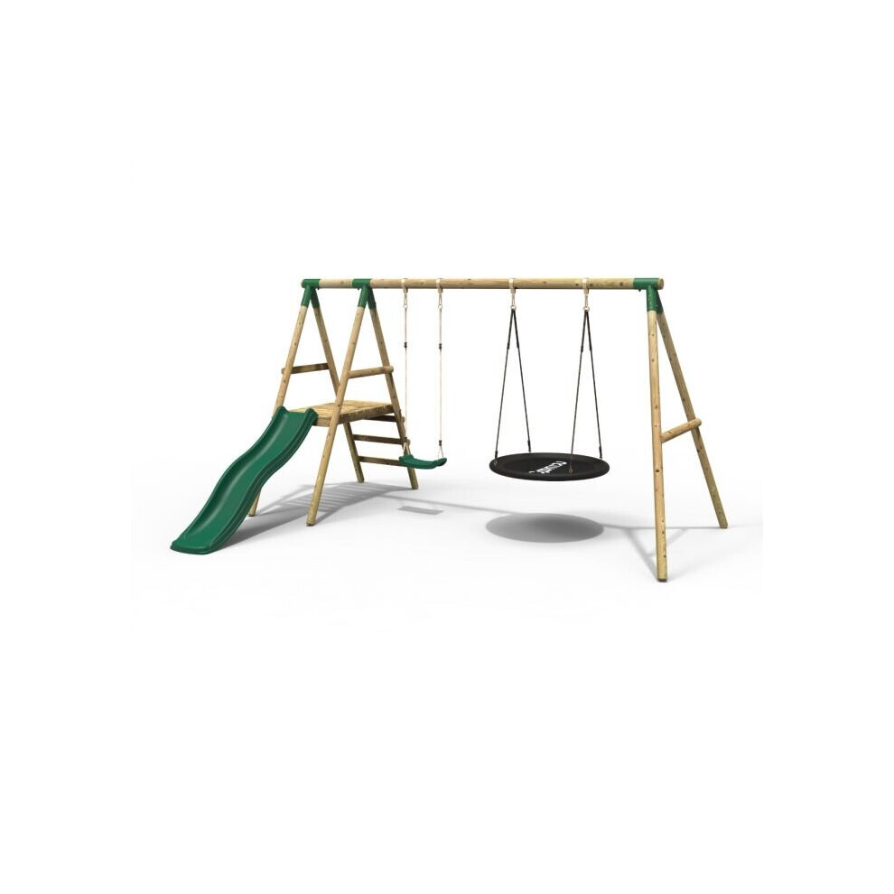 Rebo Ulysses Wooden Garden Swing Set with Platform and Slide for Kids - Green