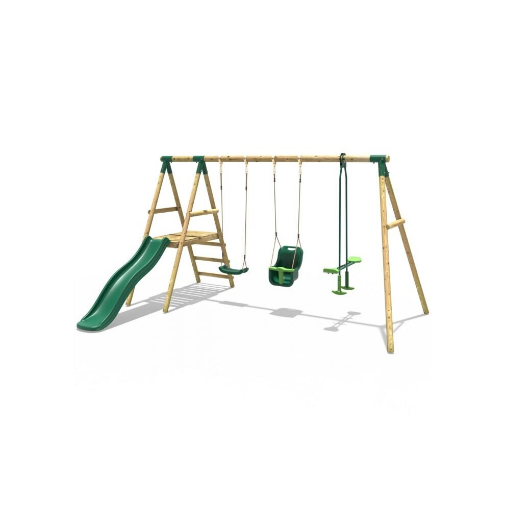Rebo Cassini Wooden Garden Swing Set with Baby Swing, Platform and Slide for Kids - Green