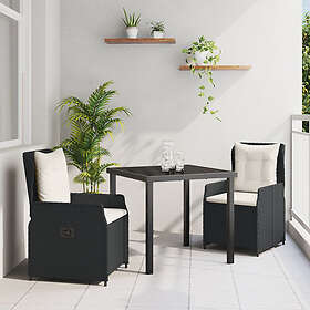 vidaXL 3 Piece Garden Dining Set Black Poly Rattan