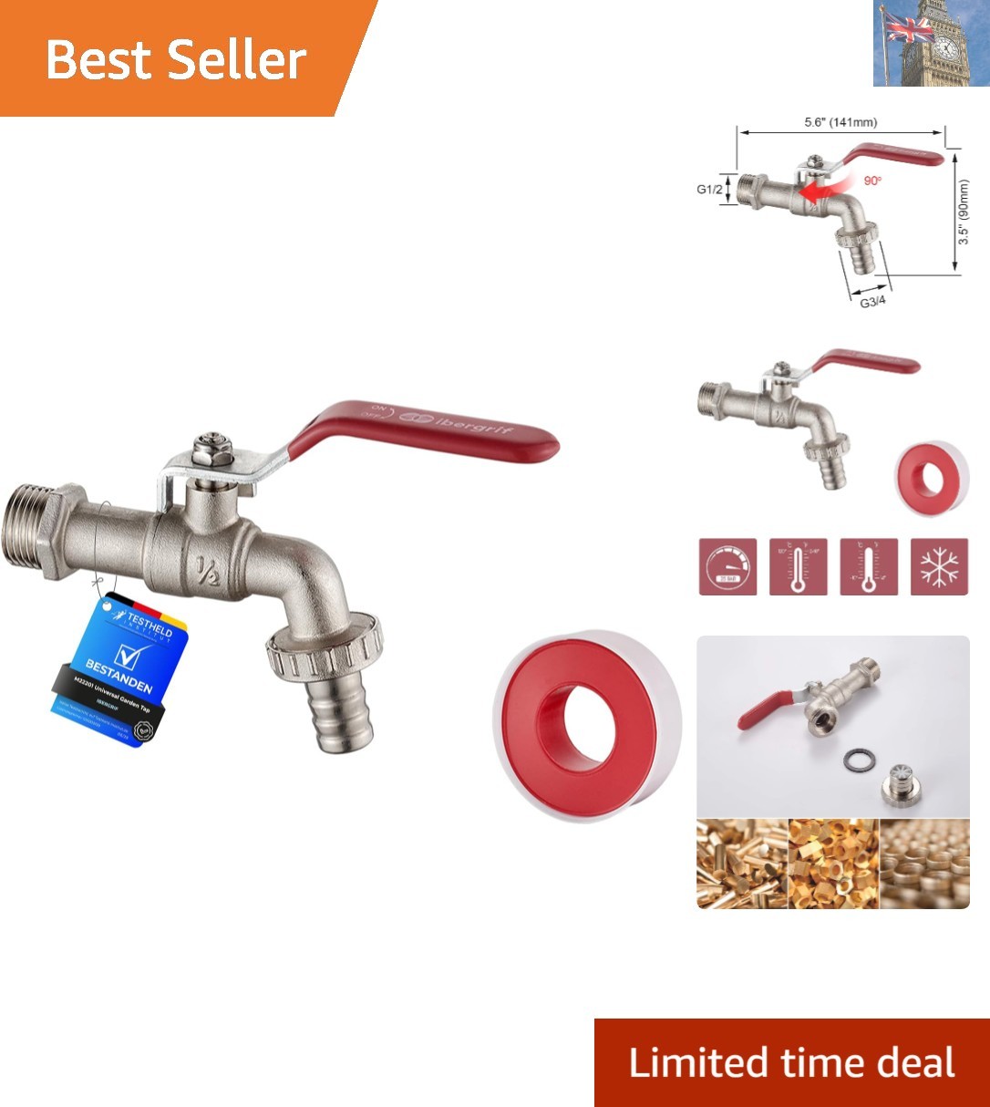 Ibergrif M22202 Garden Tap with Connector, G3/4 Inch Inlet and G1/2 Inch Outlet Outdoor Taps, Antifreeze -10 ℃, High Temperature Resistance 120 ℃ Single Tap Ball Valve Outside Faucet, Brass