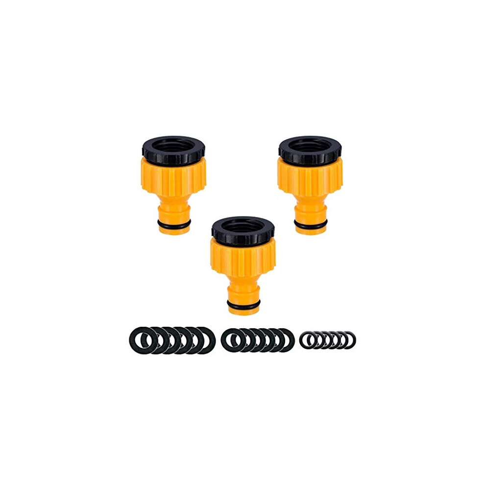 3 Pack Garden Hose Tap Connector - BSP Threaded Tap Connector Fitting for 3/4 inch & 1/2 inch 2-in-1 Threaded Faucet Adapter (Comes with 18pcs