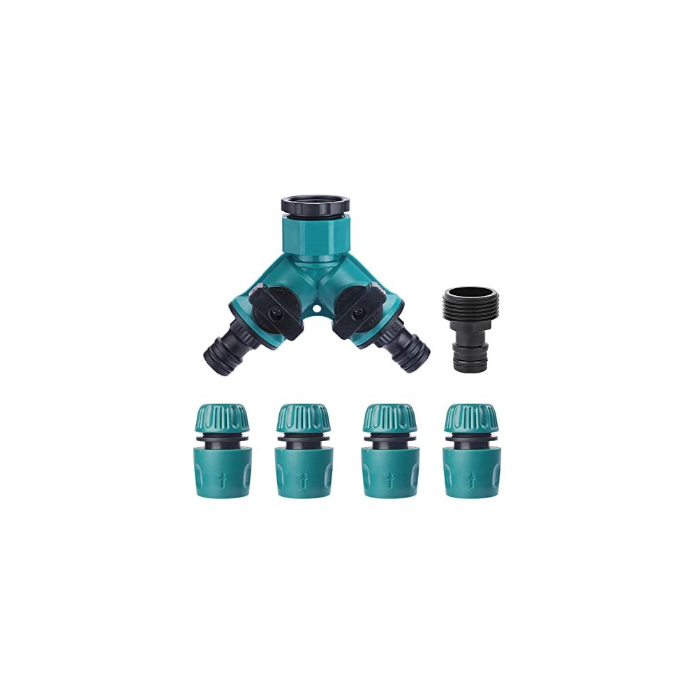 2 Way Garden Tap Connector, Garden Hose Tap Y Splitter Connector with Individual On/Off Valves, Quick Hose End Connector