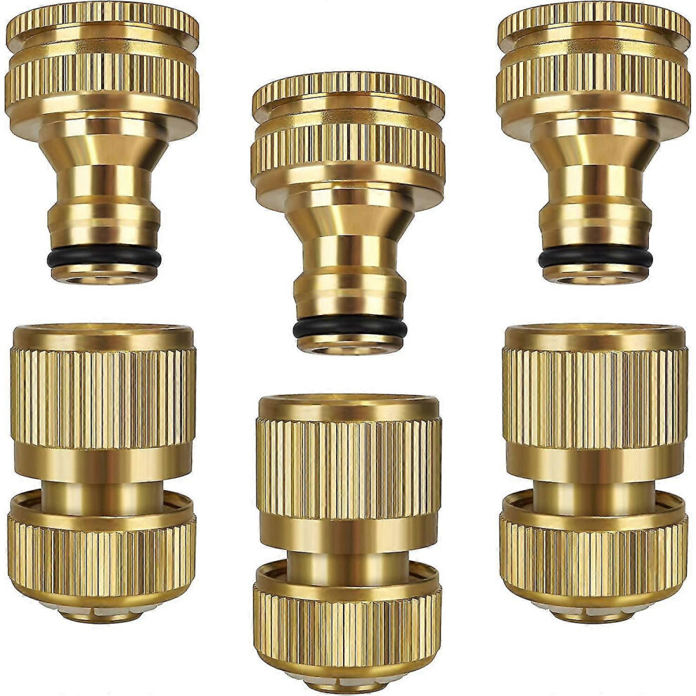 Garden Hose Connector, Solid Brass Garden Tap Connector, 1/2 Inch and 3/4 Inch 2-in-1 Faucet Connector, 1/2 Inch Quick Connect Garden Hose Fittings, Thread Easy Connect Faucet Adapter (6 Pack)
