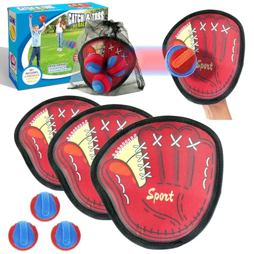 Toss and Catch Ball Set Outdoor Games for Kids - Waterproof Ball and Catch Game with 3 Paddles 3 Sticky Balls Storage Bag - Garden Games Beach Toys for Kids Adults