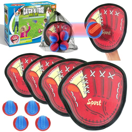 Toss and Catch Ball Set Outdoor Games for Kids - Waterproof Ball and Catch Game with 4 Paddles 4 Sticky Balls Storage Bag - Garden Games Beach Toys for Kids Adults