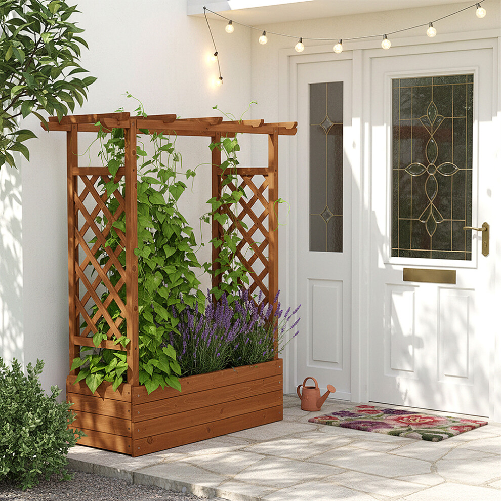 Outsunny Garden Wooden Trellis Planter Box Natural, Brown