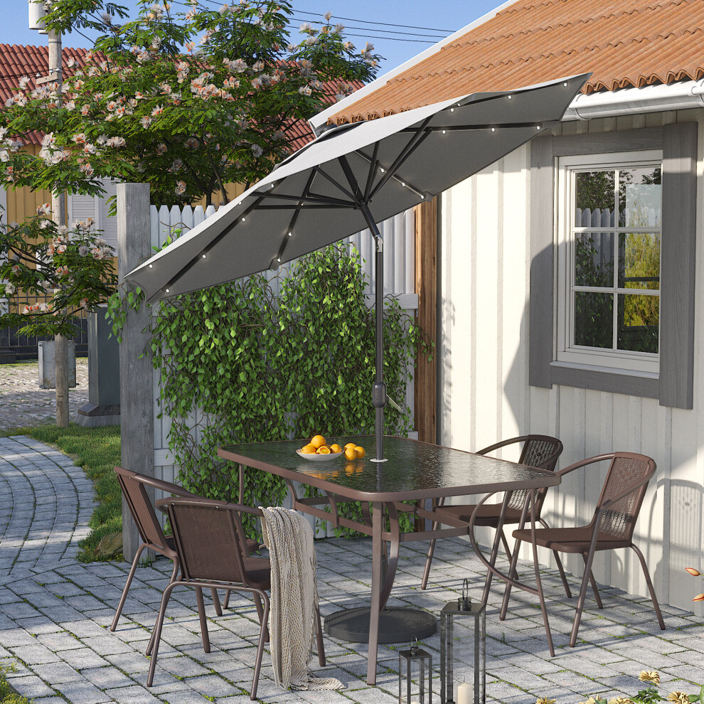 Outsunny 2.7 m Garden Parasol Umbrella with Cross Base, Sandbag, Light Grey