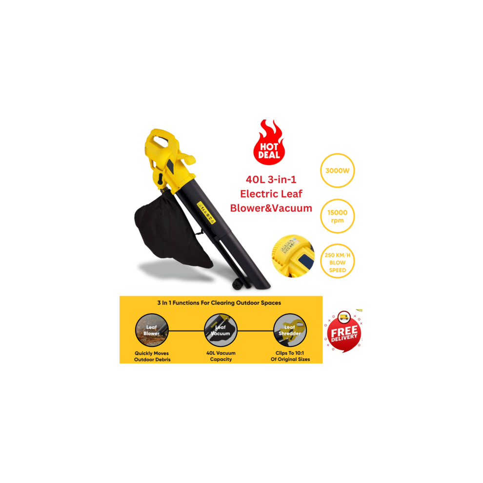 3000W 3 in 1 Leaf Blower Garden Leaves Vacuum Cleaner with Bag