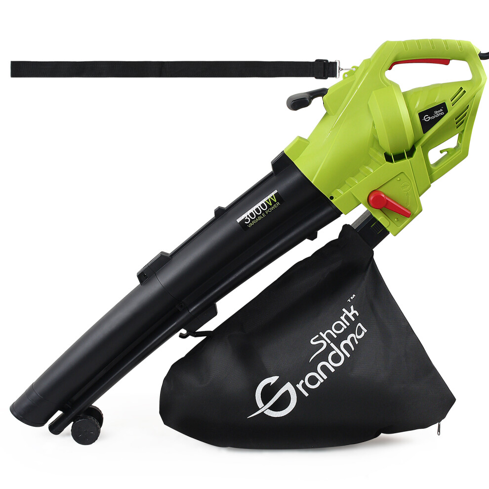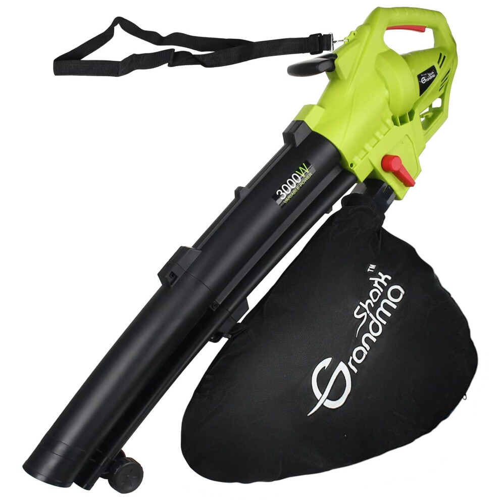 GRANDMA SHARK 3000W 3 in 1 Leaf Blower, Garden Leaves Vacuum Cleaner, Support for Breaking Leaves and Having a Large Collection Bag (Green)