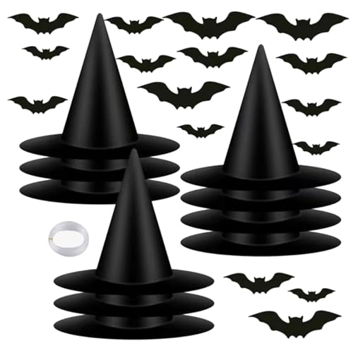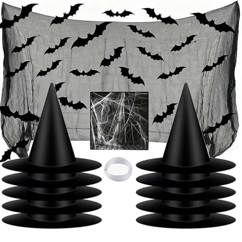 Witches Hat,12-Piece Costume Accessories with Bats - Black Witches Hat Party Props - for Indoor Outdoor Haunted House Wall Window Front Door Garden Yard Patio Porch