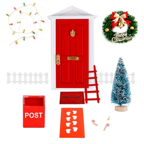 Christmas Fairy Door Kit - MagicElf Decor, Miniature Christmas Scene Fairy Door Set with Accessories | Wooden Dollhouses FairyTale Decorations | DIY Craft for Girls Kids Adults, Garden Wall Tree Decor