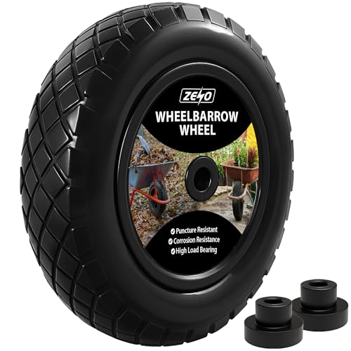 ZENO Wheelbarrow Wheel 14" | Puncture Proof Wheelbarrow Wheel Replacement 3.50-8 | Heavy Duty Solid Tyre Rim for Wheelbarrows, Garden Trolley, Traile