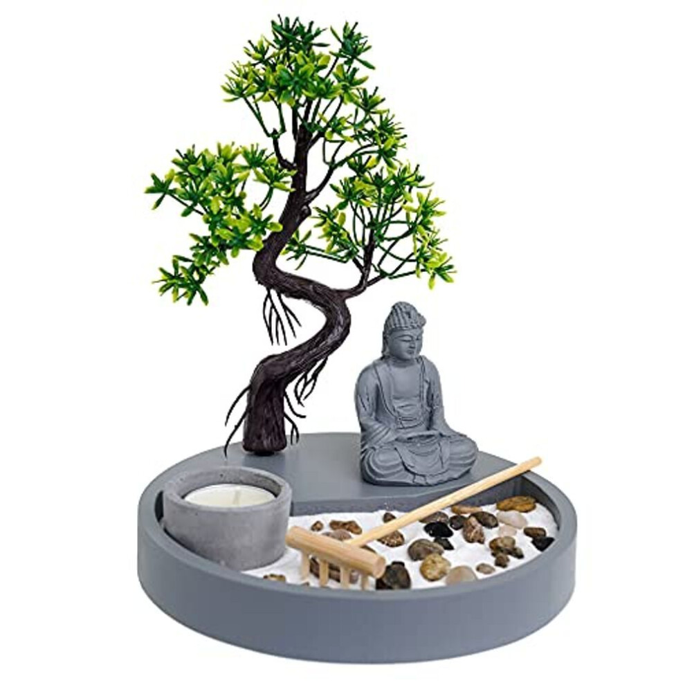 Zen Garden Buddha Candle Holder Incense Holder Meditation Gift Set Yin Yang Meditation white sand and decorative Stones (Zen Buddha)